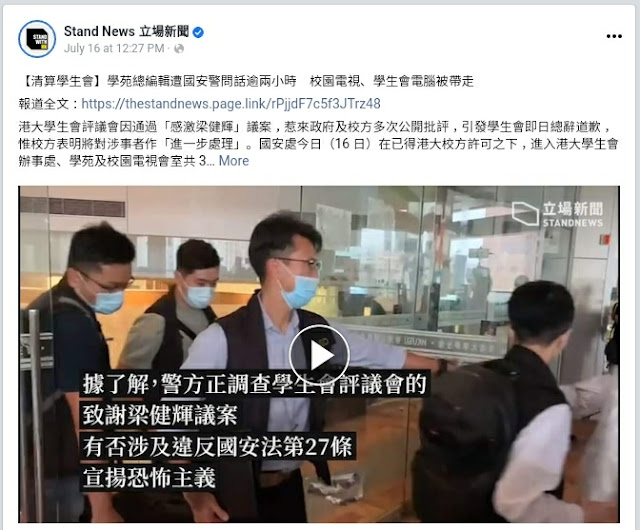 港大學生會評議會,因為"感激梁健輝"被港大指學生會宣揚恐怖主義,引致學生會總辭,繼而校方限佢地7日内遷出學生會大樓。